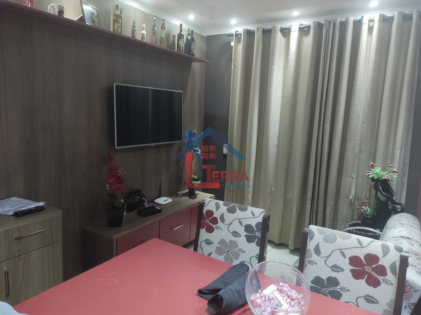 2 dormitórios, 1 banheiro social, 1 sala de TV, 1 cozinha, 1 área de serviço, 1 vaga.