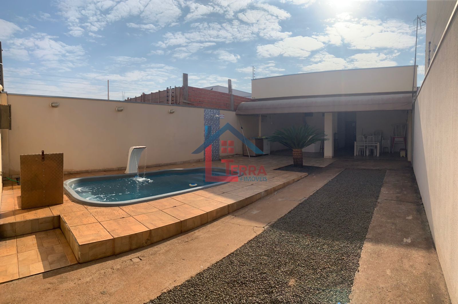 1 dormitório, 2 banheiros sociais, 1 sala de TV, 1 cozinha, área de serviço, 1 área gourmet com churrasqueira, piscina com hidro, Led e cascata.