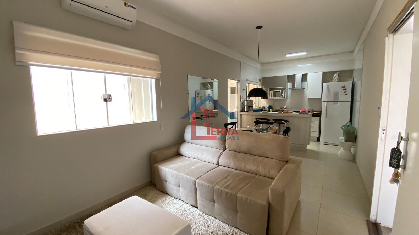 3 dormitórios sendo 1 suíte, sala de TV integrada com cozinha, banheiro social, área de serviço, 2 vagas cobertas e 2 descobertas.