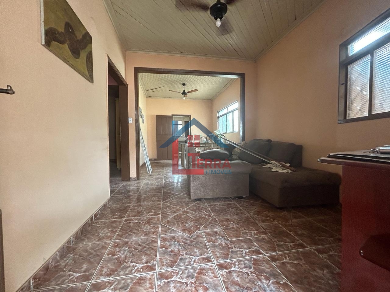 2 dormitórios sendo 1 suíte, sala de TV, sala de jantar, cozinha, banheiro social, área de serviço, 1 vaga coberta banheiro externo, quintal amplo.